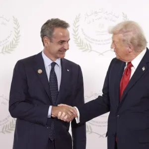 ΕΠΙΚΑΙΡΟΤΗΤΑ Η θερμή χειραψία Τραμπ με Μητσοτάκη στη Σύνοδο για τη συμφωνία ειρήνης Ισραήλ – Χαμάς Η θερμή χειραψία Τραμπ με Μητσοτάκη στη Σύνοδο για τη συμφωνία ειρήνης Ισραήλ – Χαμάς