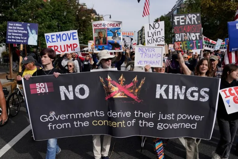 Οι διαμαρτυρίες ονομάζονται No Kings για να υπογραμμίσουν ότι η Αμερική δεν έχει απόλυτους ηγέτες, μια κριτική στον αυξανόμενο αυταρχισμό του Τραμπ.