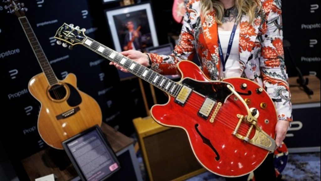Διάφορα αναμνηστικά αντικείμενα του Ντέιβιντ Μπάουι, του Τζίμι Χέντριξ και άλλων θρύλων της μουσικής θα πουληθούν επίσης στη δημοπρασία, η οποία ολοκληρώνεται απόψε.