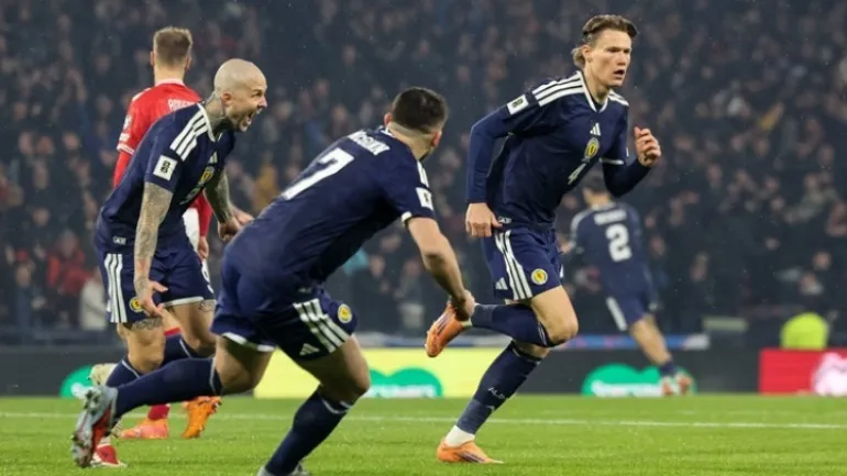 Σε ένα συγκλονιστικό ματς που έγινε στο «Χάμπντεν Παρκ» της Γλασκώβης, η Σκωτία νίκησε 4-2 τη Δανία και εξασφάλισε την απευθείας πρόκριση στο Μουντιάλ 2026. Οι γηπεδούχοι προηγήθηκαν δύο φορές με ασύλληπτο γκολ του Σκοτ ΜακΤόμινεϊ (3΄) και προβολή του Σάνκλαντ (78΄), αλλά οι Δανοί βρήκαν τις απαντήσεις παρότι έπαιζαν με παίκτη λιγότερο λόγω αποβολής του Ράσμους Κρίστενσεν στο 61΄. Η Ιστορία και η επιστροφή της Σκωτίας σε τελική φάση Παγκοσμίου Κυπέλλου μετά από 28 χρόνια γράφτηκε στις καθυστερήσεις με τον Τίρνι και τον Σάνκλαντ με απίστευτη «λόμπα» από το κέντρο του γηπέδου, να διαμορφώνουν το τελικό σκορ. Οι Δανοί θα διεκδικήσουν την πρόκριση στα play off.