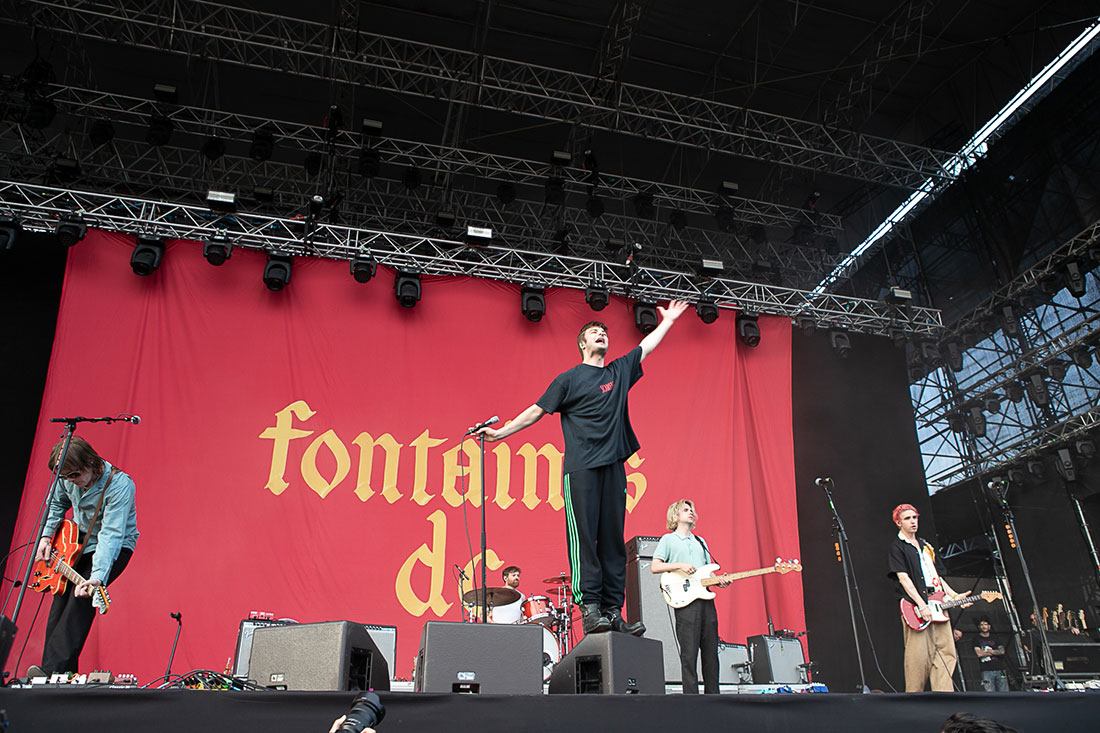 Στις επτά και τέταρτο που ήρθε η ώρα των πολυσυζητημένων Fontaines D.C. από την Ιρλανδία η εικόνα της Πλατείας Νερού προμήνυε αισθητά μεγαλύτερη προσέλευση από εκείνη της βραδιάς των Bauhaus. Γεγονός που επιβεβαιώθηκε τα μάλα. Με τον υπερκινητικό και αλλόφρονα Grian Chatten, το post-punk κουιντέτο έδειξε τα γυαλιστερά του δόντια μονομιάς. Και παρότι μετρούν μονάχα πέντε χρόνια ύπαρξης, οι μπροστινοί του κάγκελου τραγούδησαν όλα τα στιχάκια του πετυχημένου “Skinty Fia”. Μα όλα! Μιλάμε λοιπόν για άλλη μια αγαπημένη μπάντα του ιδιαίτατου ελληνικού κοινού που έχει πολλά να κερδίσει από τη συμπάθειά μας.