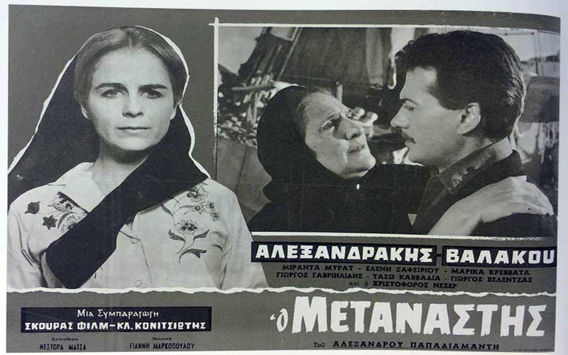 Είδα τυχαία στην ΕΤ3 μια ταινία του 1965 με τον Αλεξανδράκη, την Τασώ Καββαδία και την Αντιγόνη Βαλάκου, που λεγόταν ο Μετανάστης, ταινία βασισμένη σε μυθιστόρημα του Αλέξη Παπαδιαμάντη.